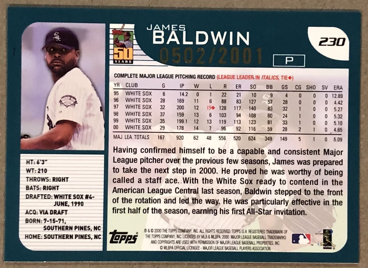 Lot 146 2001 TOPPS LIMITED EDITION JAMES BALDWIN