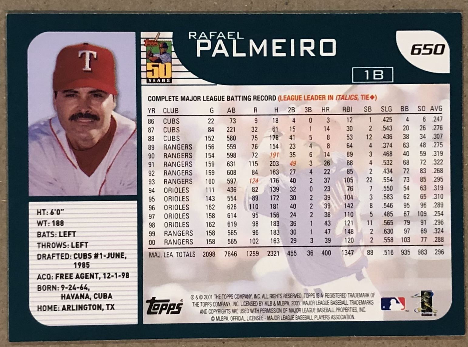 Lot 158 2001 TOPPS RAFAEL PALMEIRO