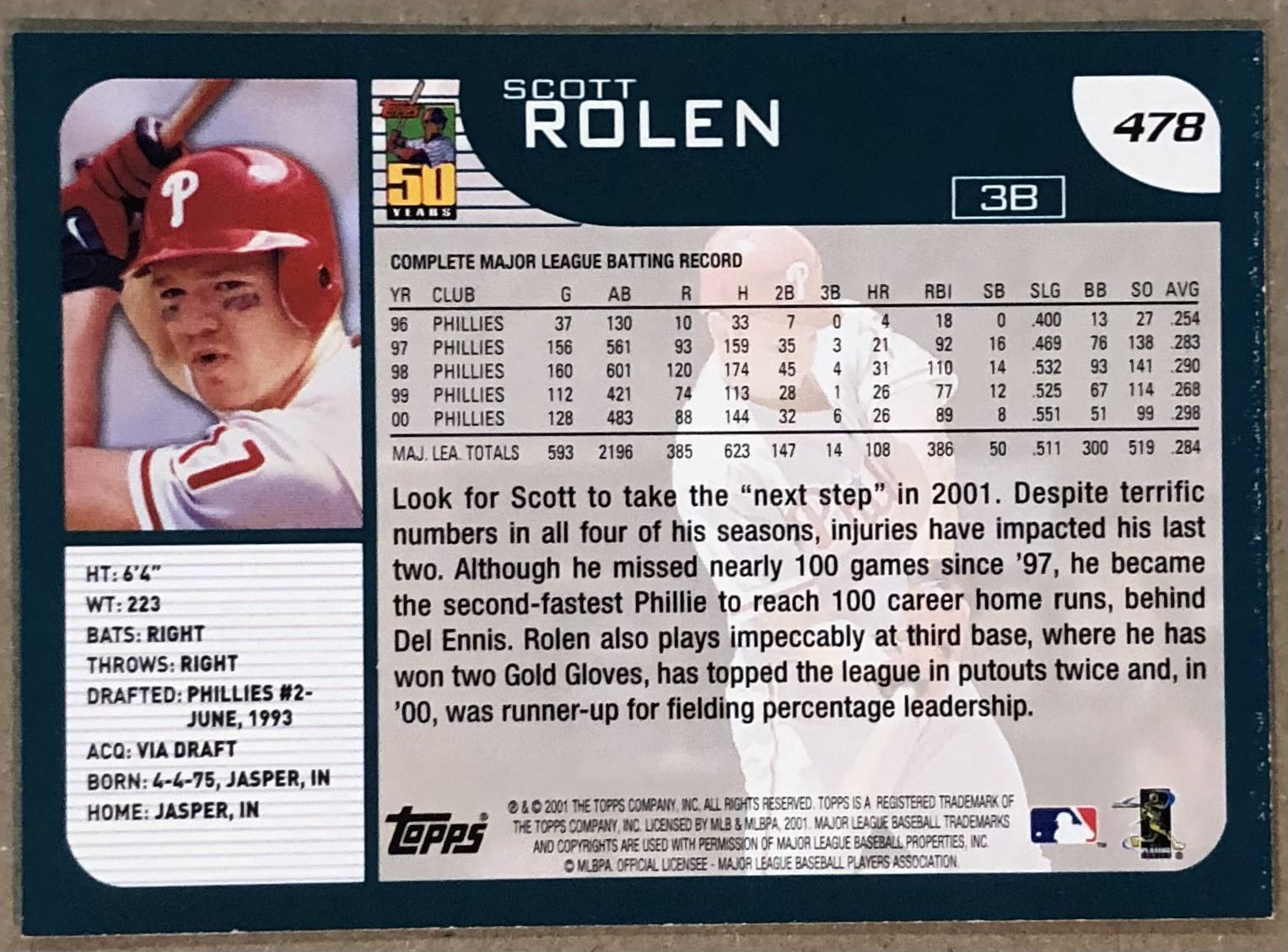 Lot 161 2001 TOPPS SCOTT ROLEN (HOF)