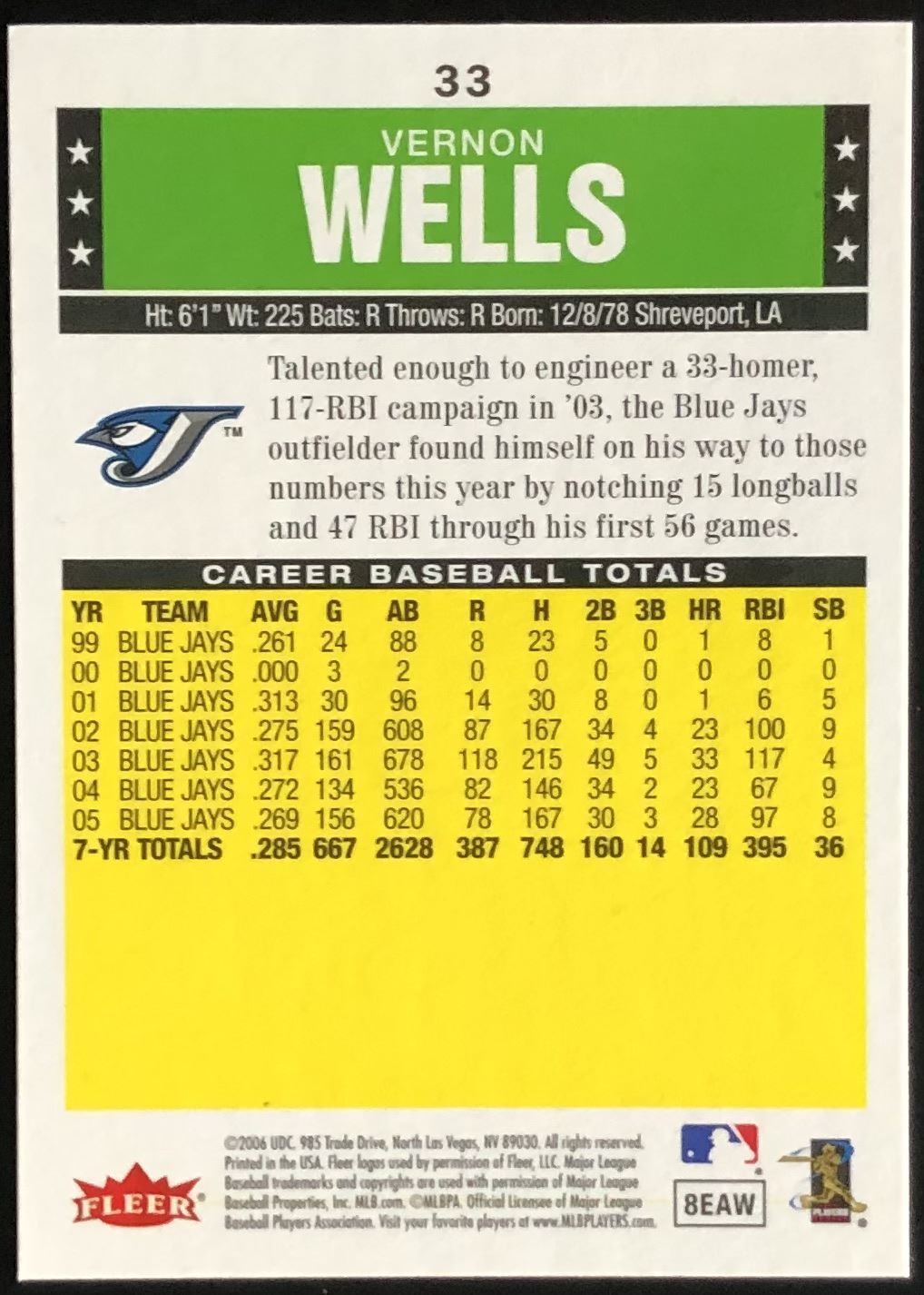 Lot 182 2006 FLEER VERNON WELLS