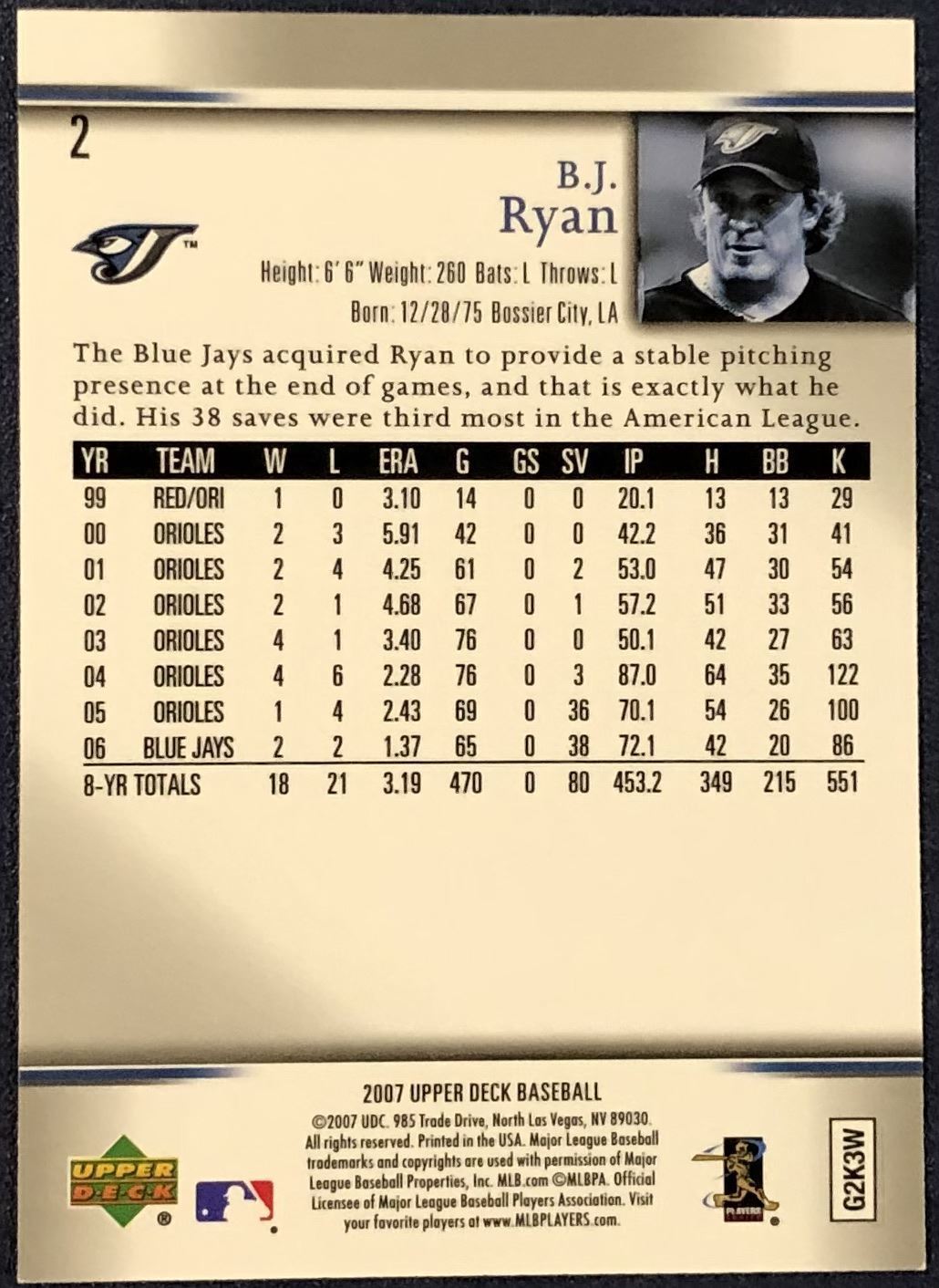 Lot 185 2006 TOPPS B.J. RYAN