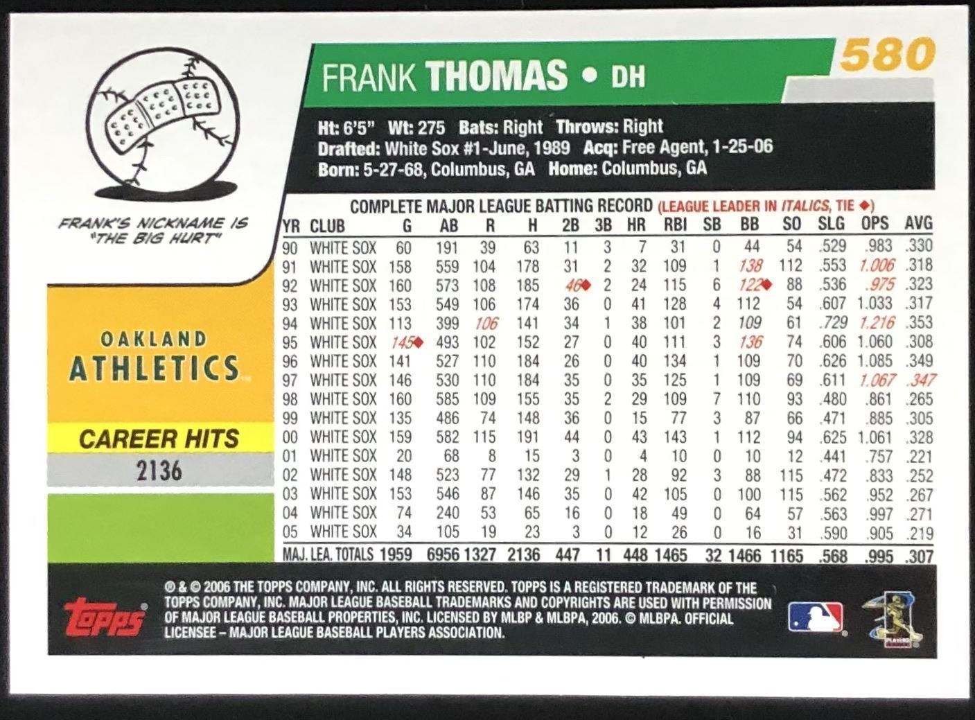 Lot 187 2006 TOPPS FRANK THOMAS (HOF)
