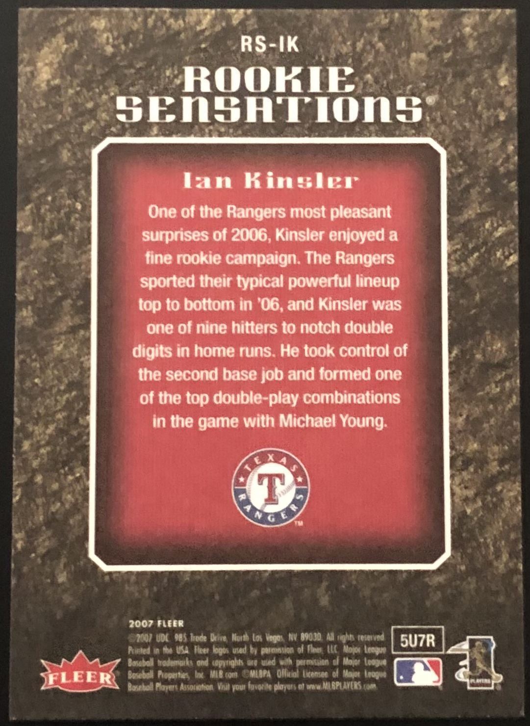 Lot 190 2007 FLEER IAN KINSLER ROOKIE CARD