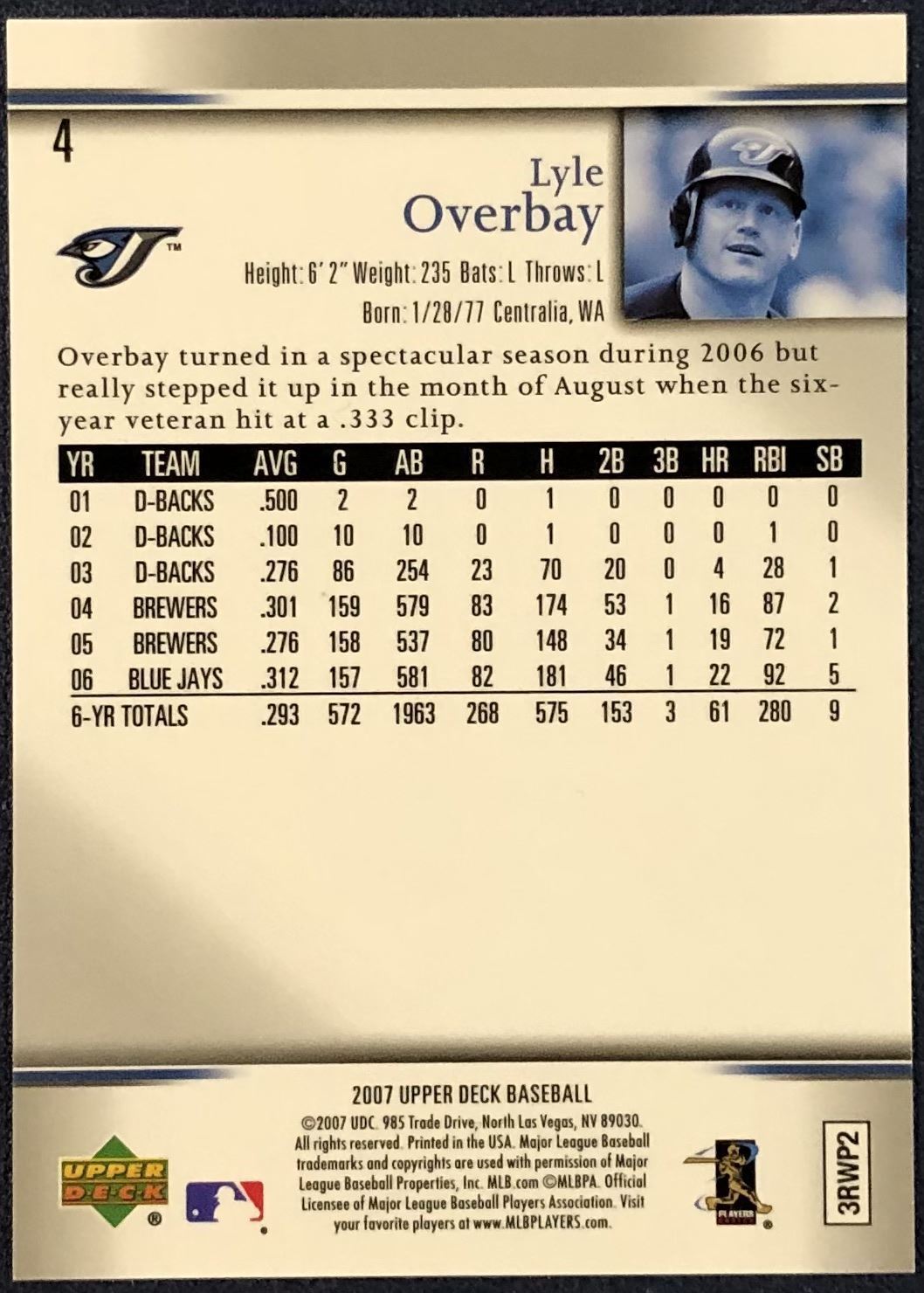 Lot 194 2007 UPPER DECK LYLE OVERBAY