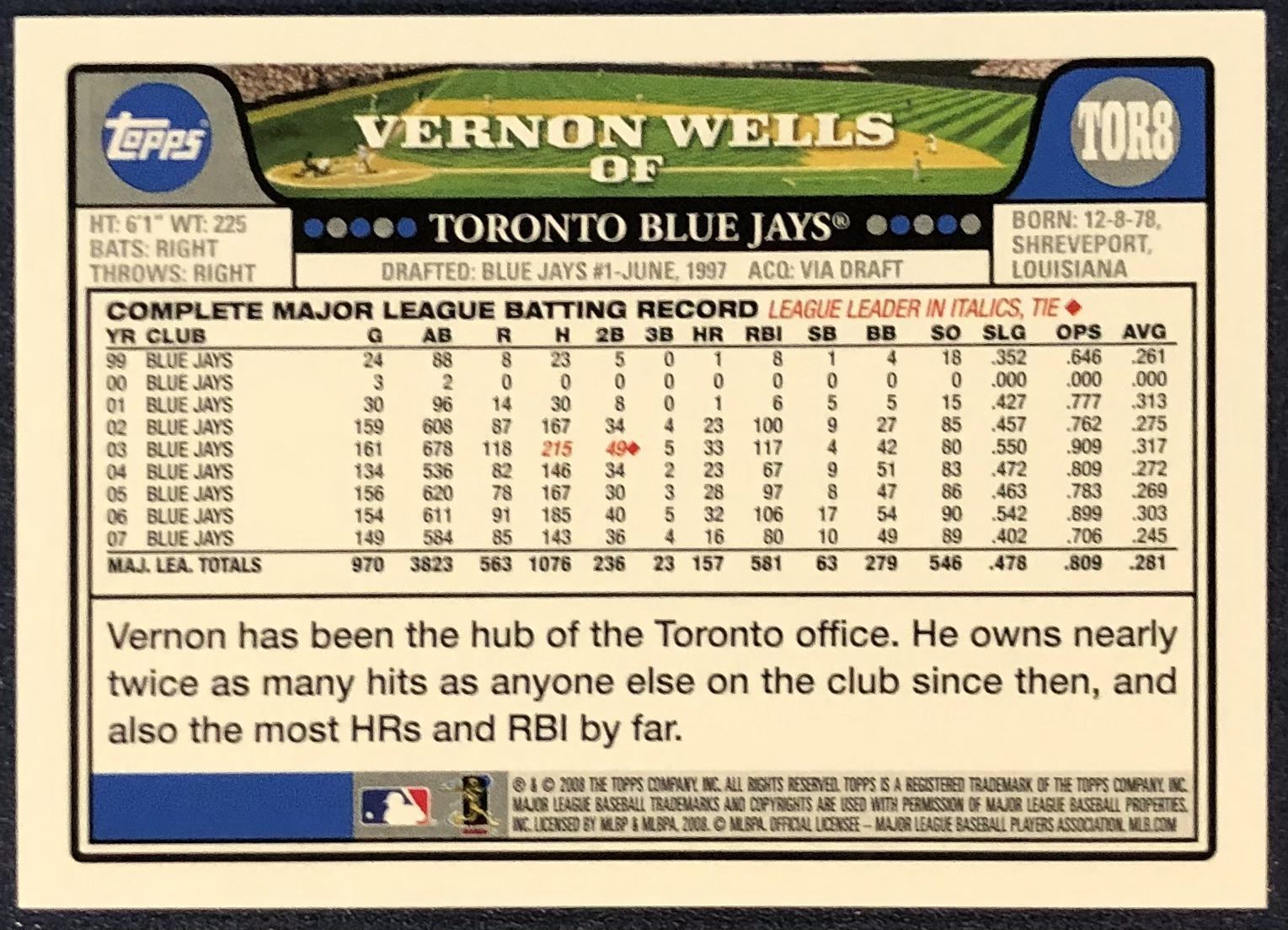 Lot 198 2008 TOPPS VERNON WELLS