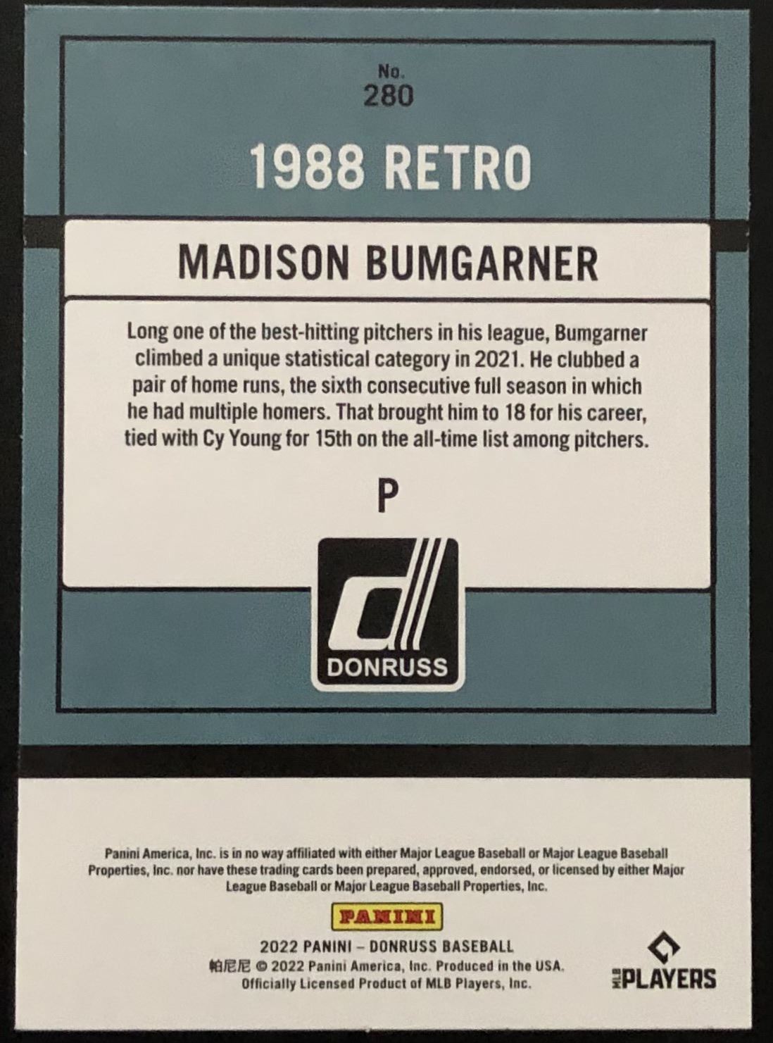 Lot 202 2022 DONRUSS '88 RETRO MADISON BUMGARNER