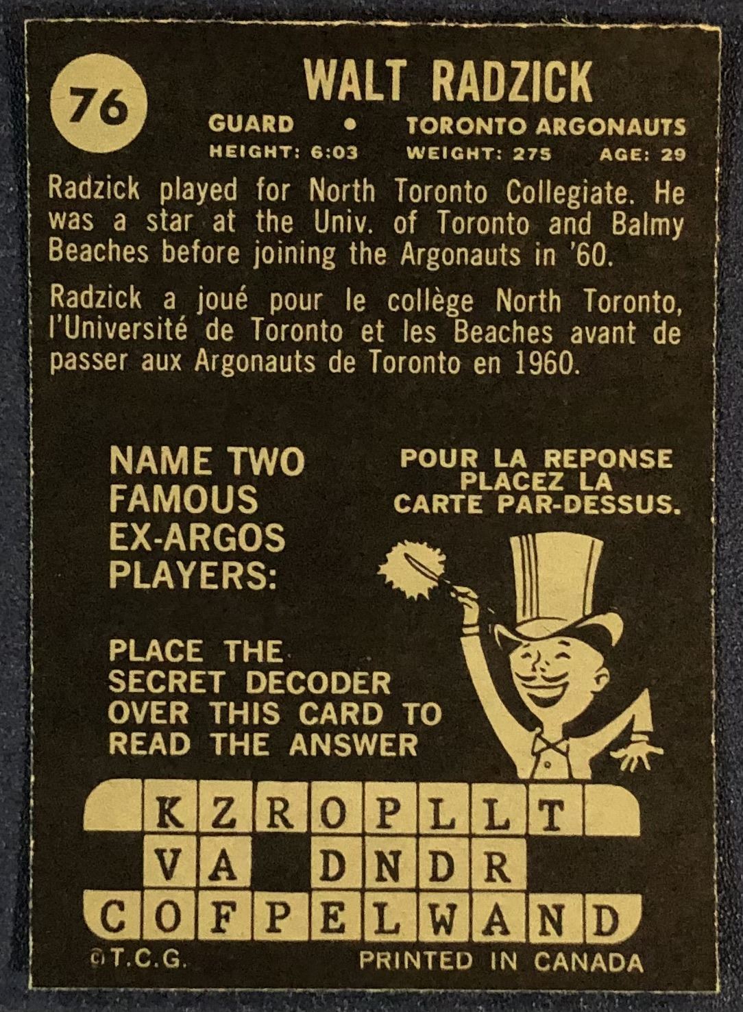Card #76 CFL, football, vintage, OPC