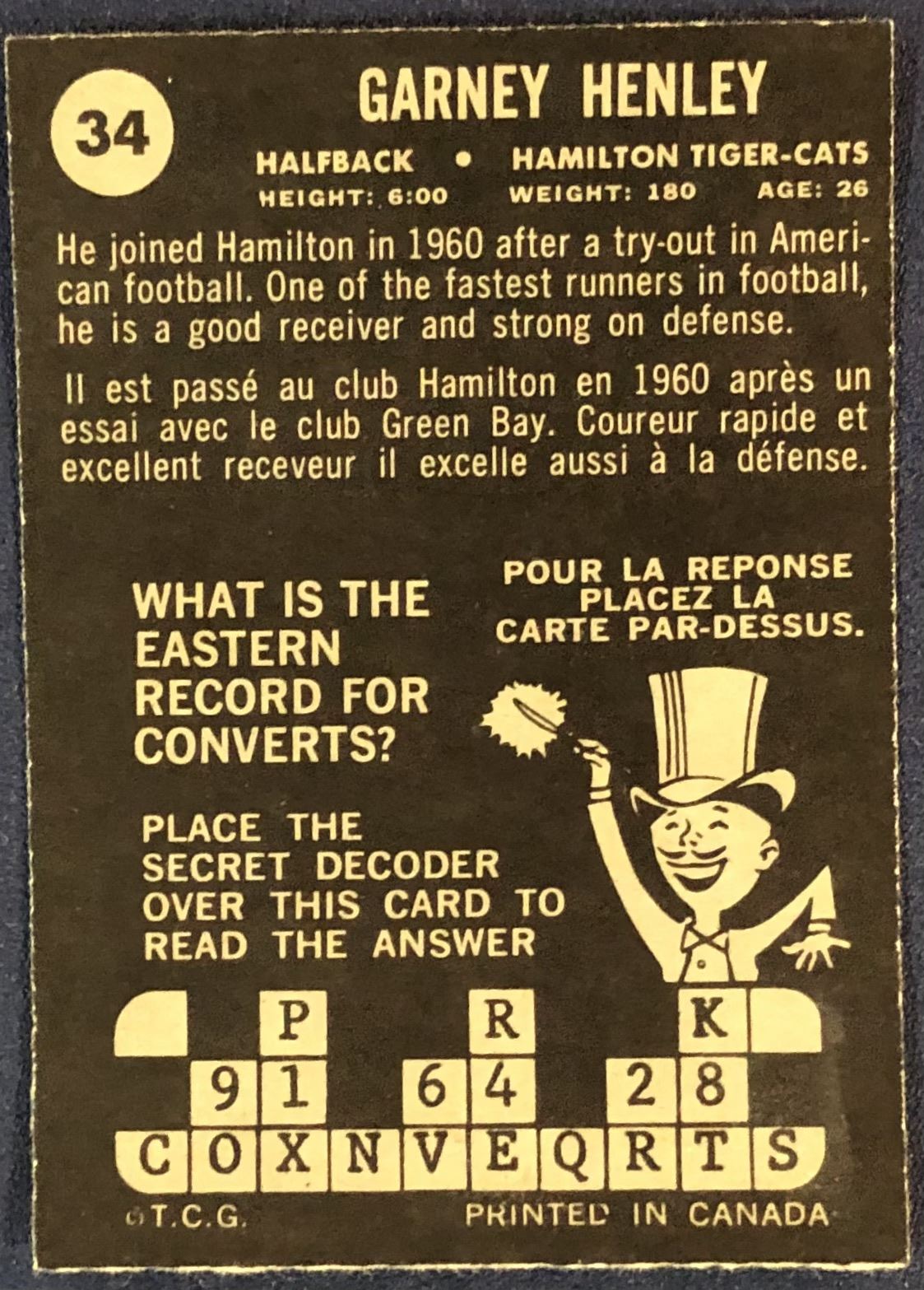 Lot 258 1964 O-PEE-CHEE GARNEY HENLEY (HOF)