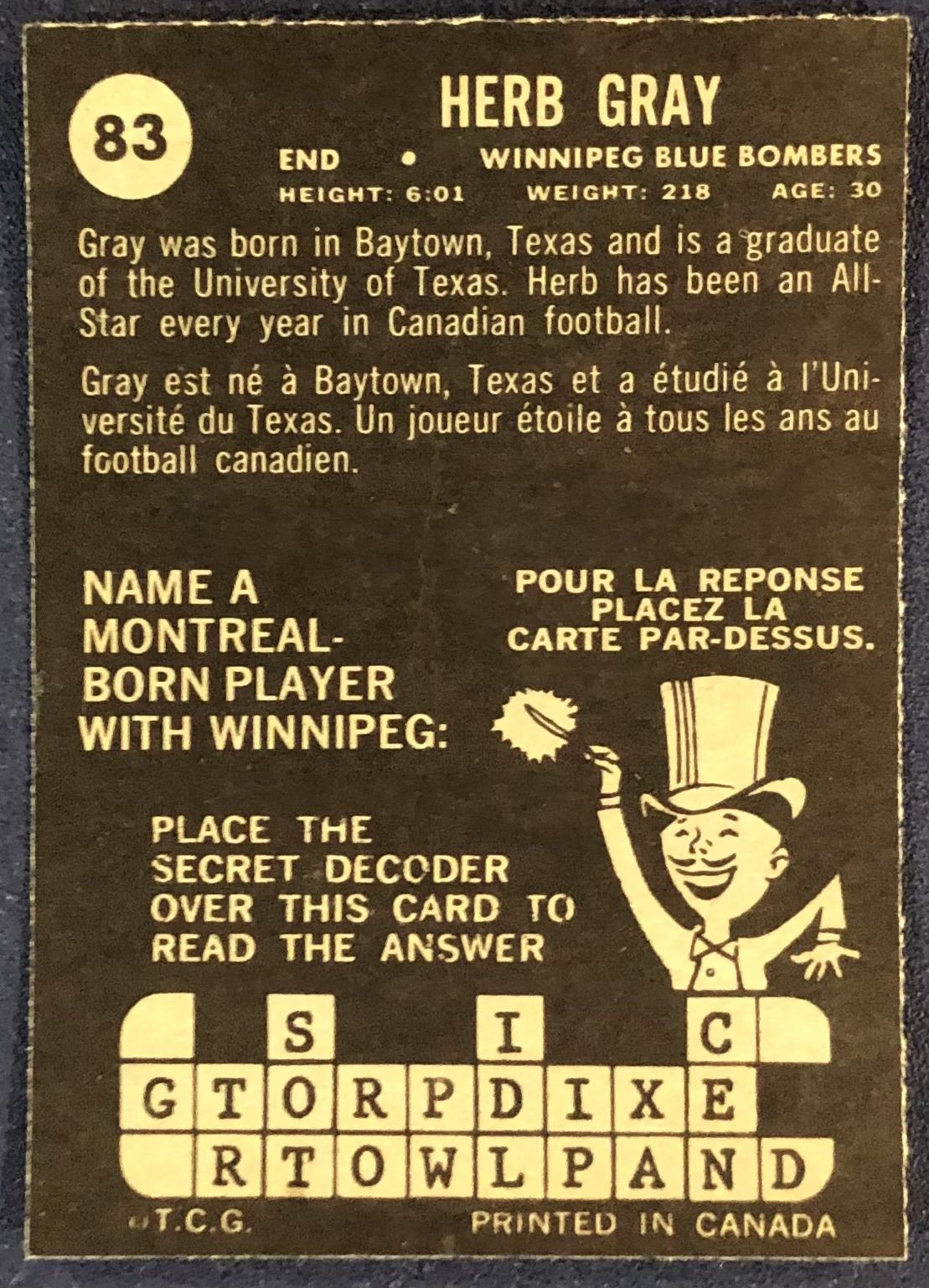 Lot 260 1964 O-PEE-CHEE HERB GRAY (HOF)