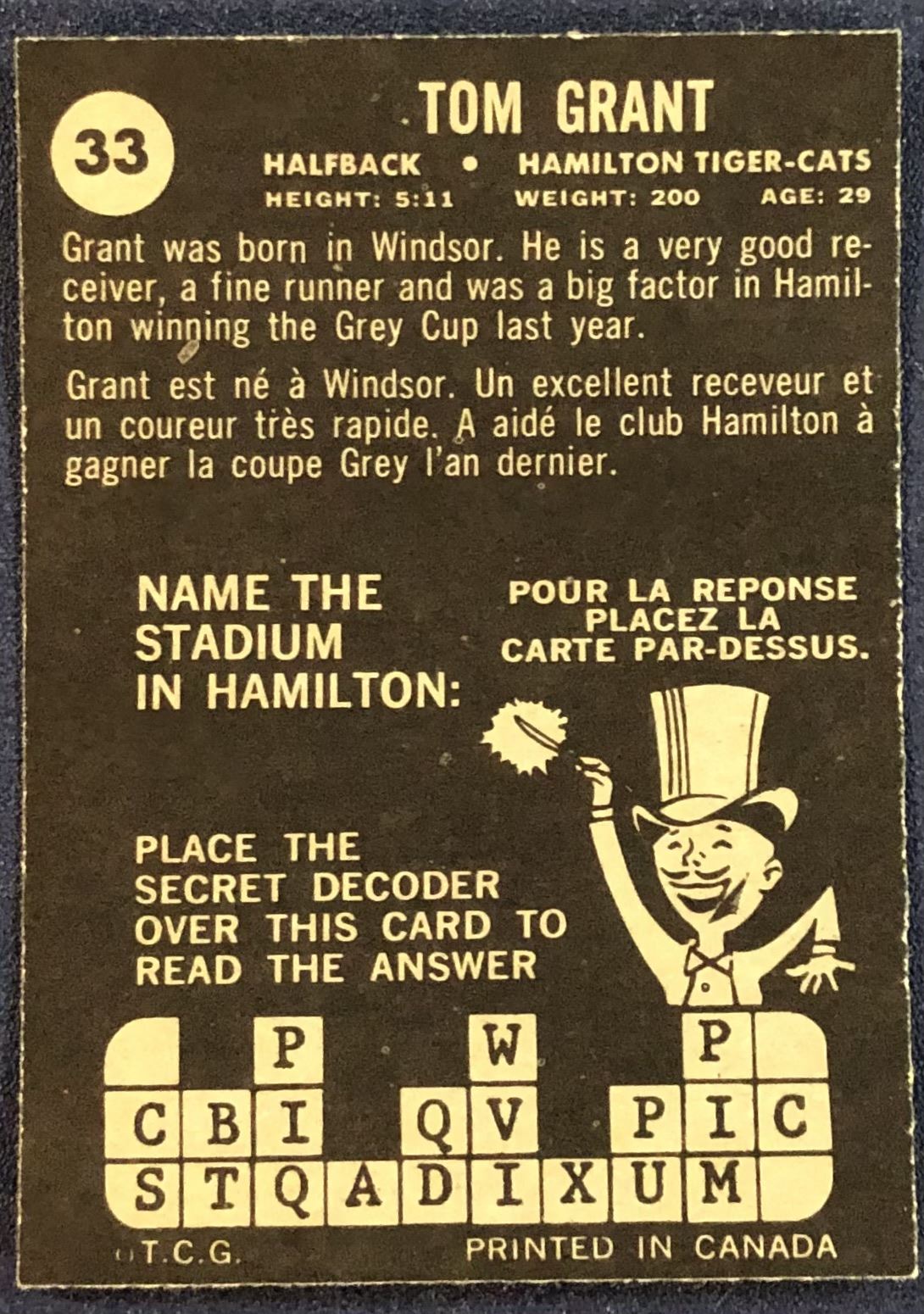 Lot 265 1964 O-PEE-CHEE TOMMY GRANT (HOF)