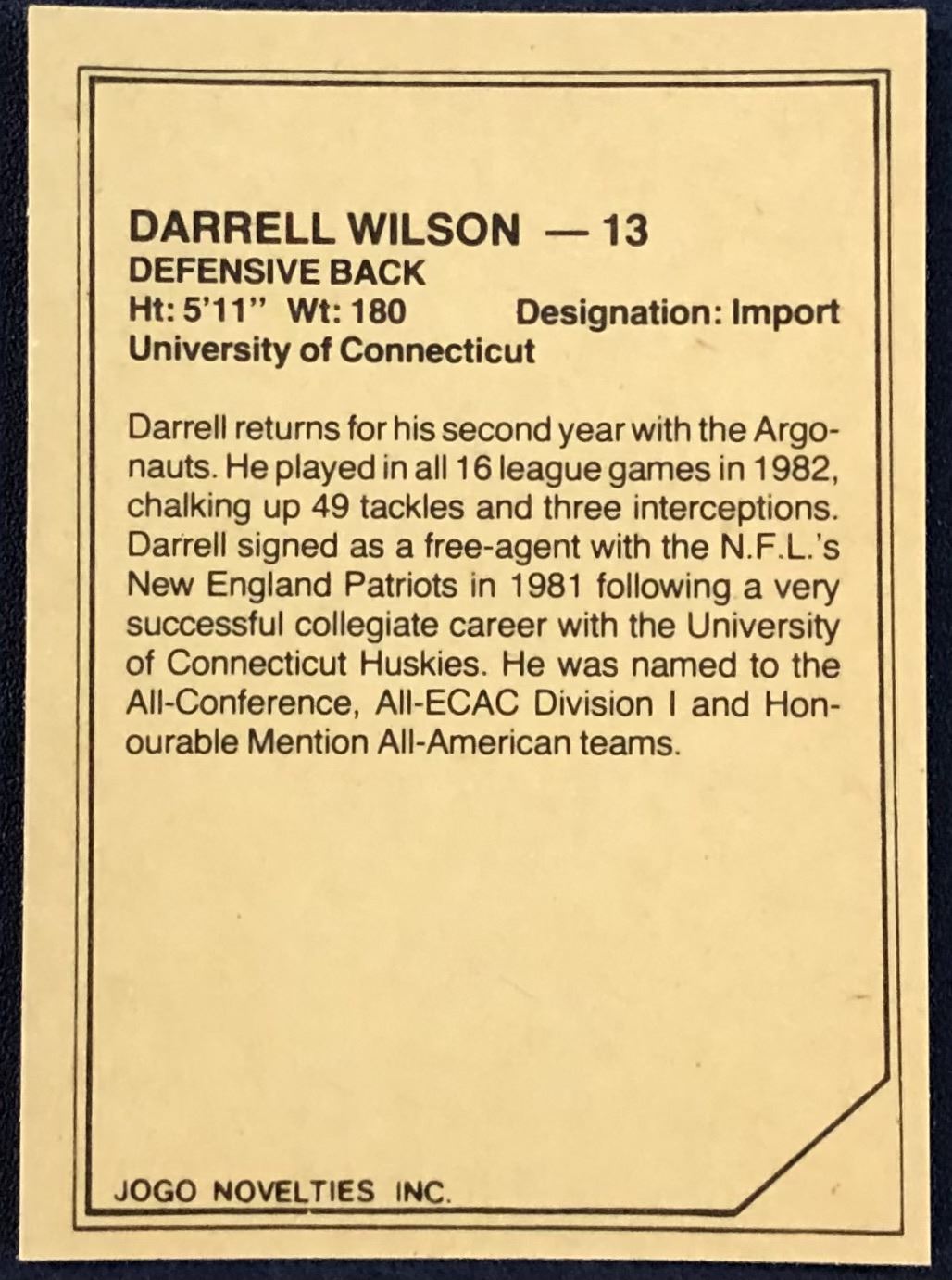 Lot 285 1984 JOGO CFL DARRELL WILSON