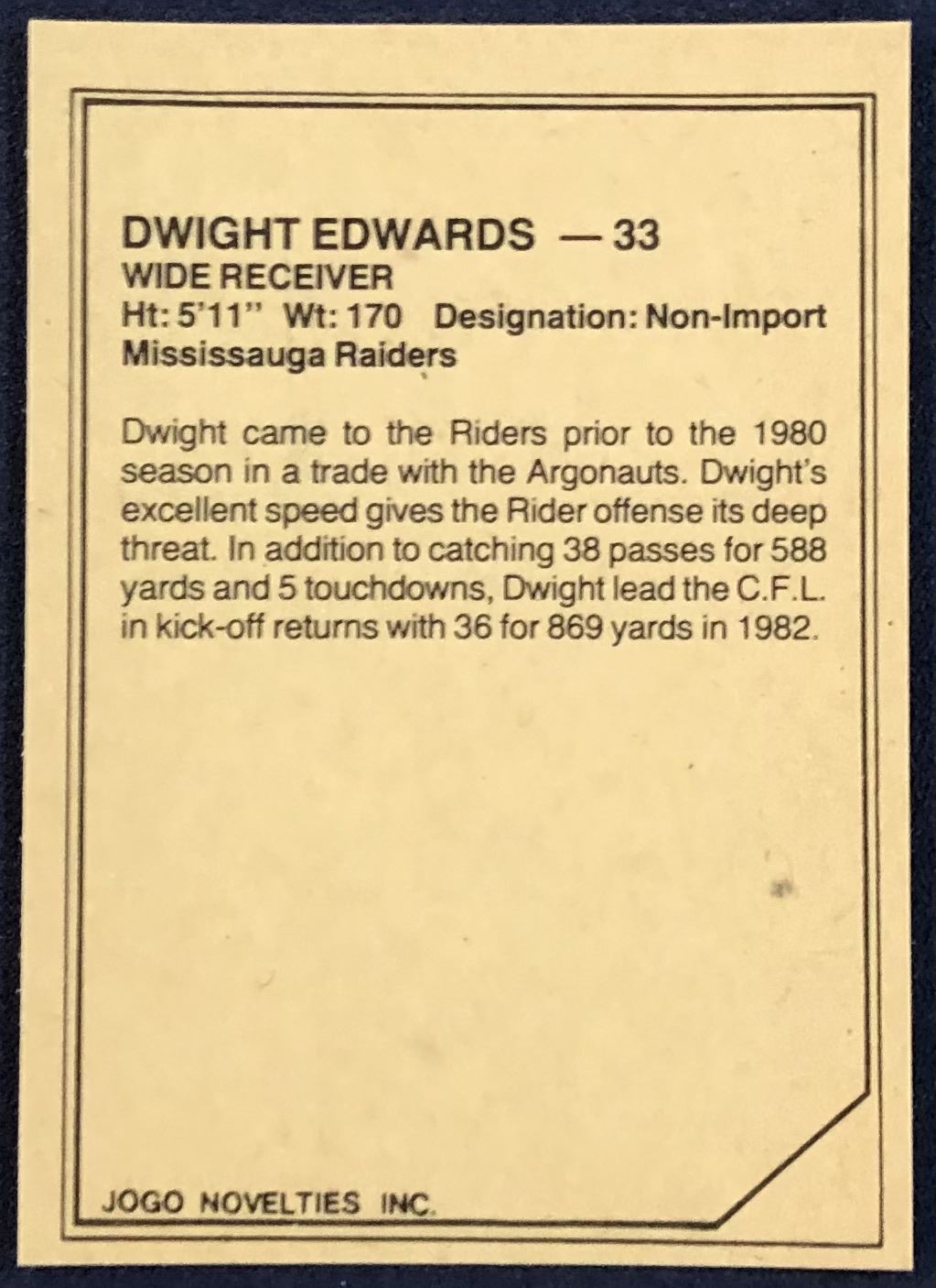 Lot 286 1984 JOGO CFL DWIGHT EDWARDS