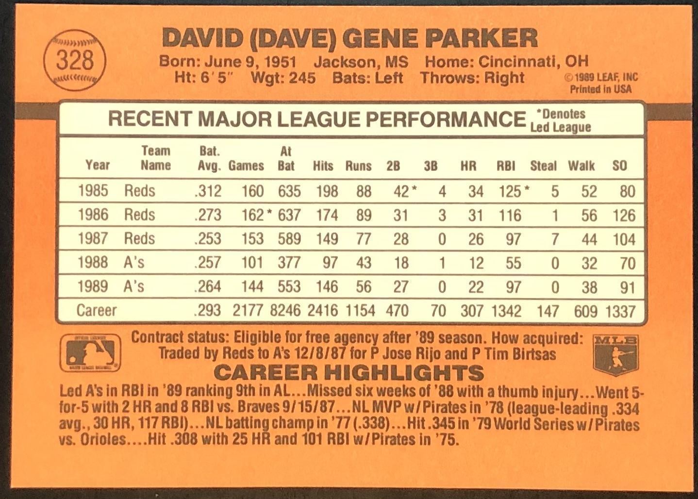 Lot 310 1990 DONRUSS DAVE PARKER (HOF)