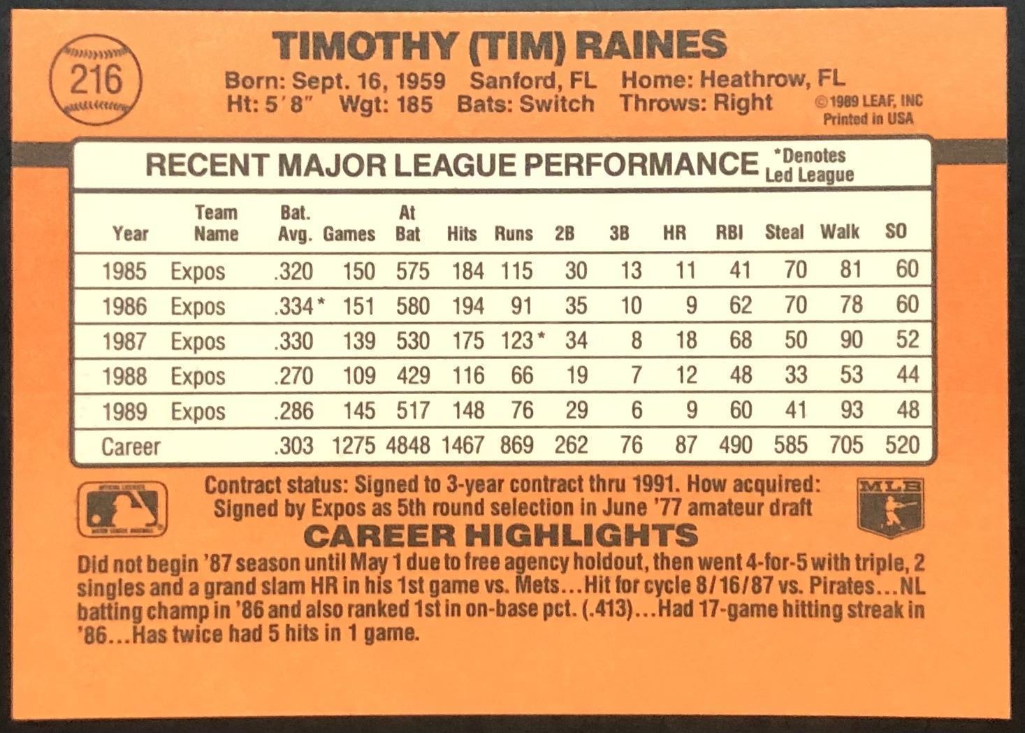 Lot 315 1990 DONRUSS TIM RAINES (HOF)