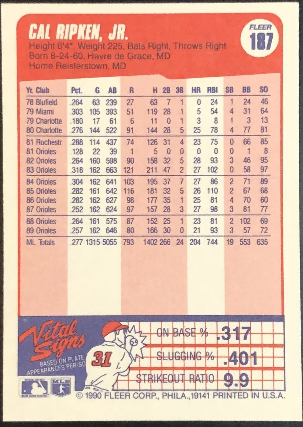 Lot 316 1990 FLEER CAL RIPKEN JR. (HOF)