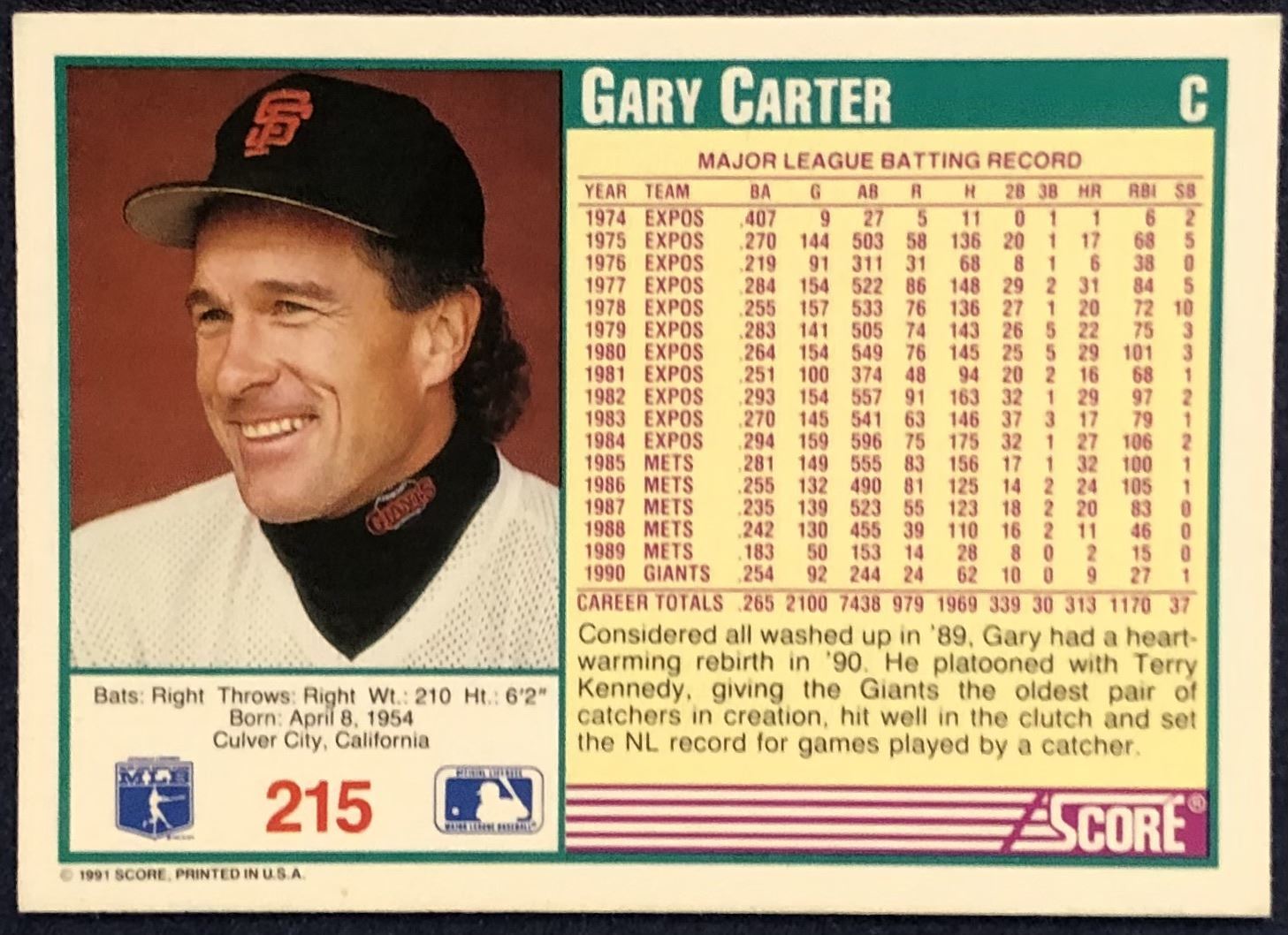 Lot 334 1991 SCORE GARY CARTER (HOF)