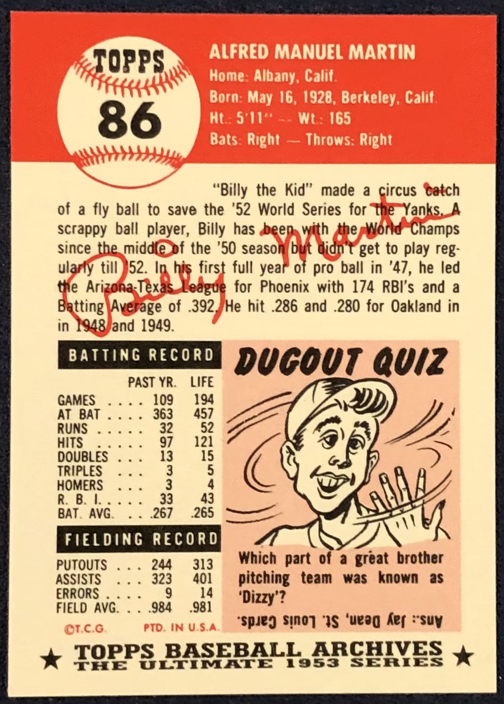Lot 343 1991 TOPPS ARCHIVES (1953 SERIES) - BILLY MARTIN
