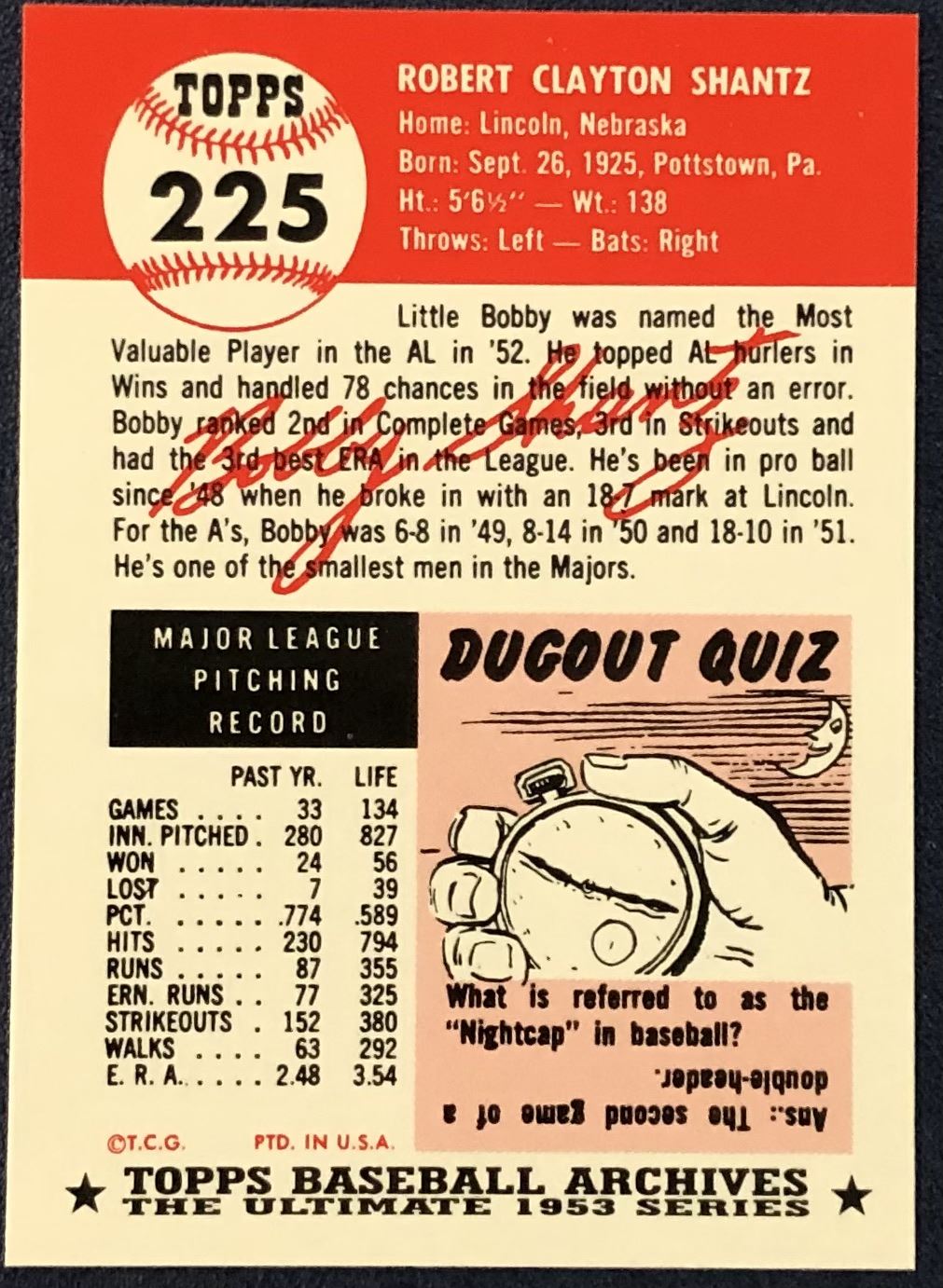 Lot 346 1991 TOPPS ARCHIVES (1953 SERIES) - BOBBY SHANTZ