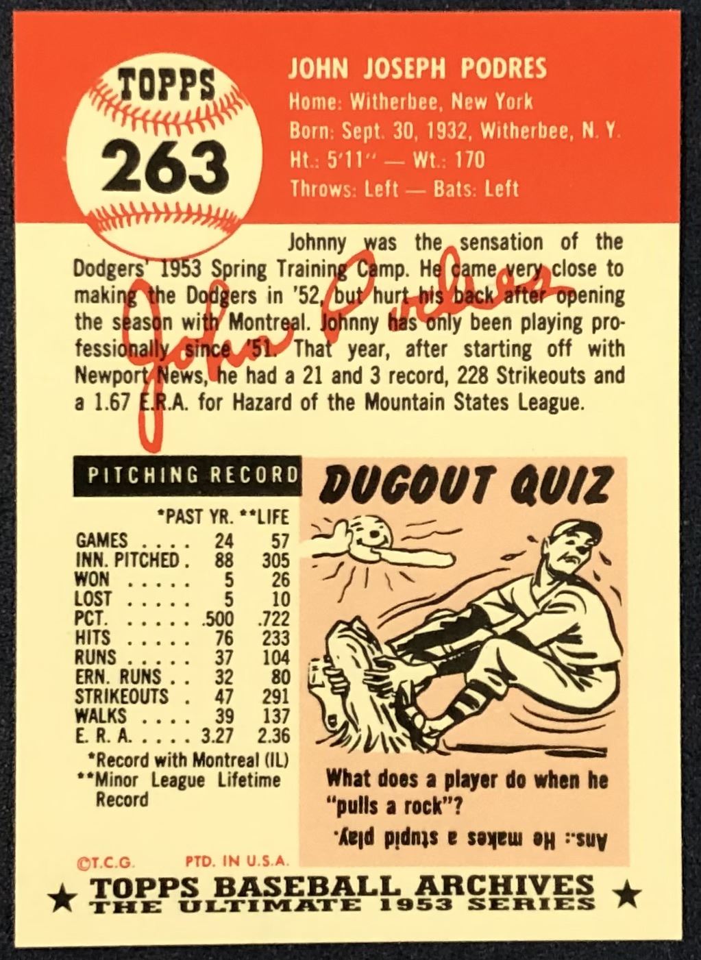 Lot 358 1991 TOPPS ARCHIVES (1953 SERIES) - JOHNNY PODRES (HOF)
