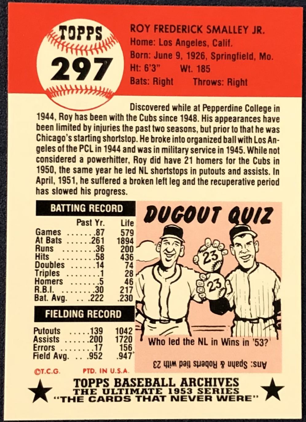 Lot 367 1991 TOPPS ARCHIVES (1953 SERIES) - ROY SMALLEY