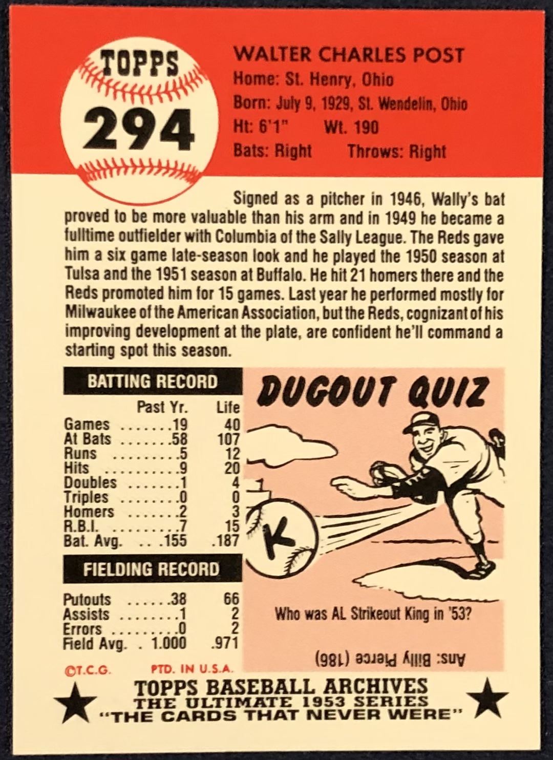 Lot 370 1991 TOPPS ARCHIVES (1953 SERIES) - WALLY POST