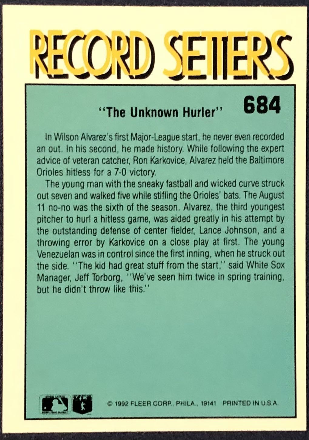 Lot 391 1992 FLEER WILSON ALVAREZ ROOKIE CARD