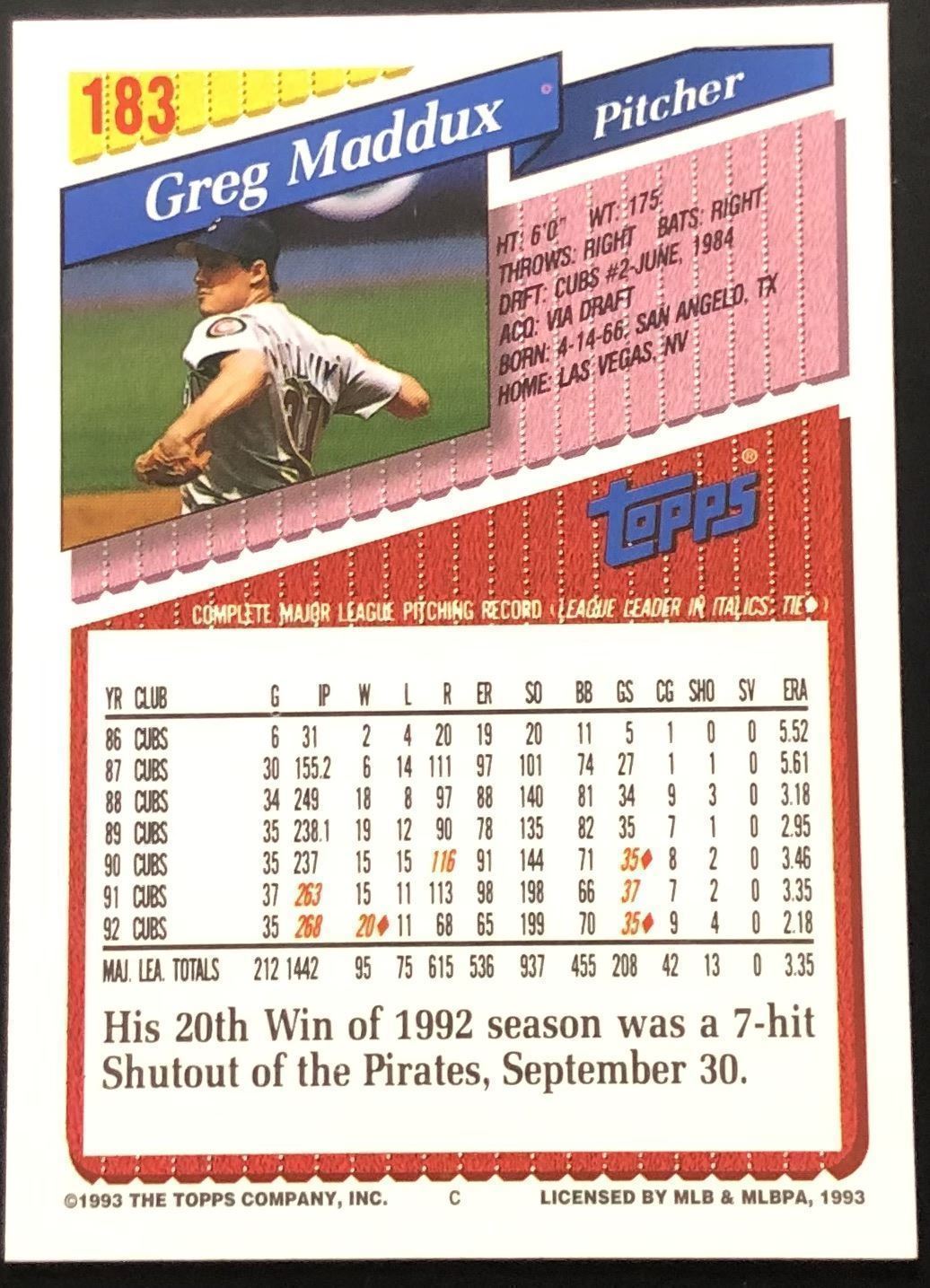 Lot 403 1993 TOPPS GREG MADDUX (HOF)