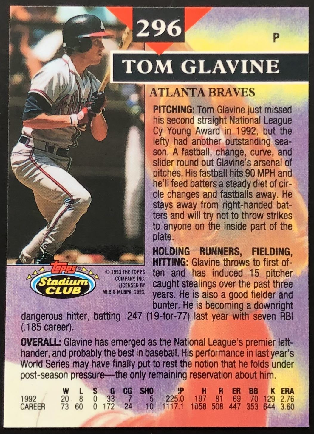 Lot 406 1993 TOPPS STADIUM CLUB TOM GLAVINE (HOF)