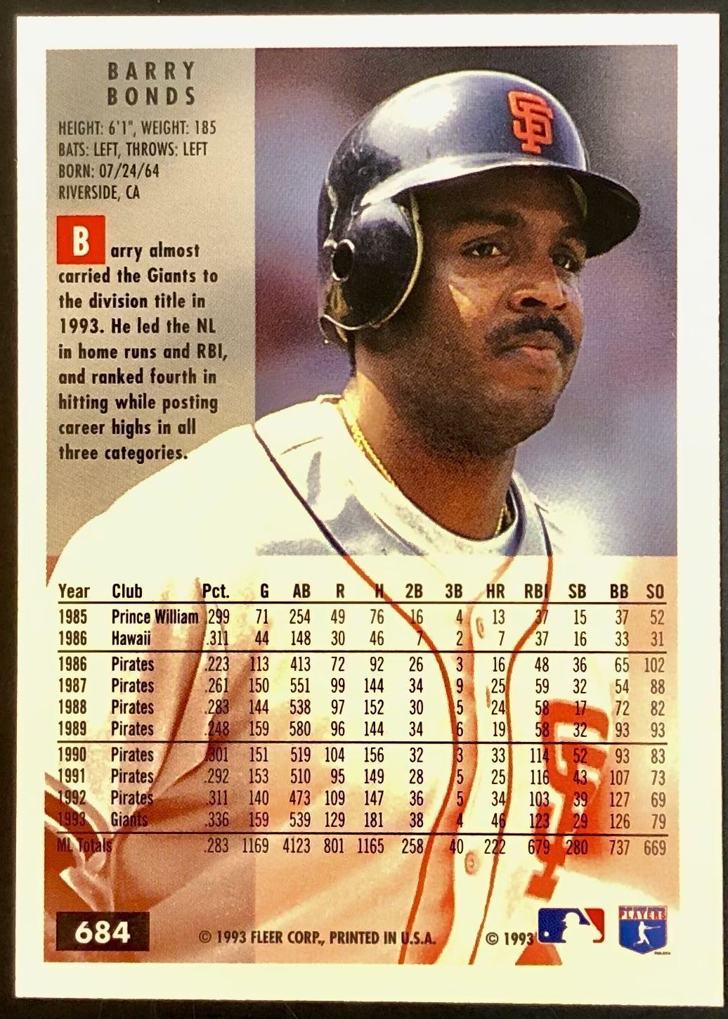Lot 412 1994 FLEER BARRY BONDS