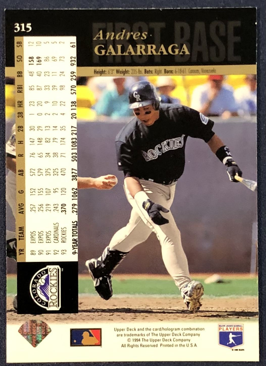 Lot 417 1994 UPPER DECK ANDRES GALARRAGA