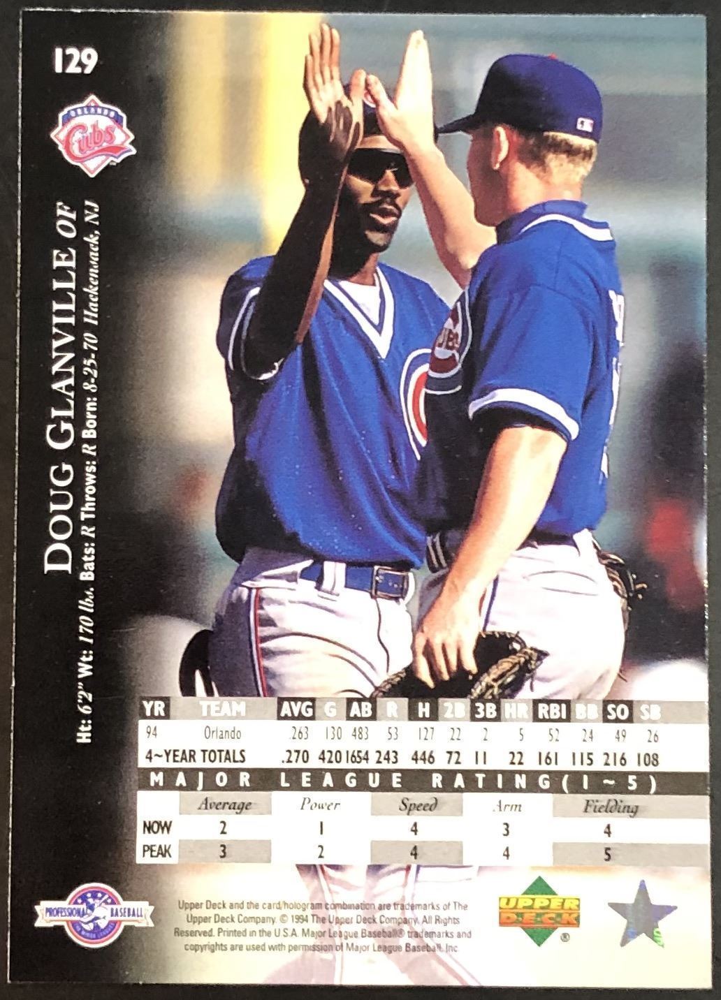 Lot 424 1995 UPPER DECK DOUG GLANVILLE ROOKIE CARD