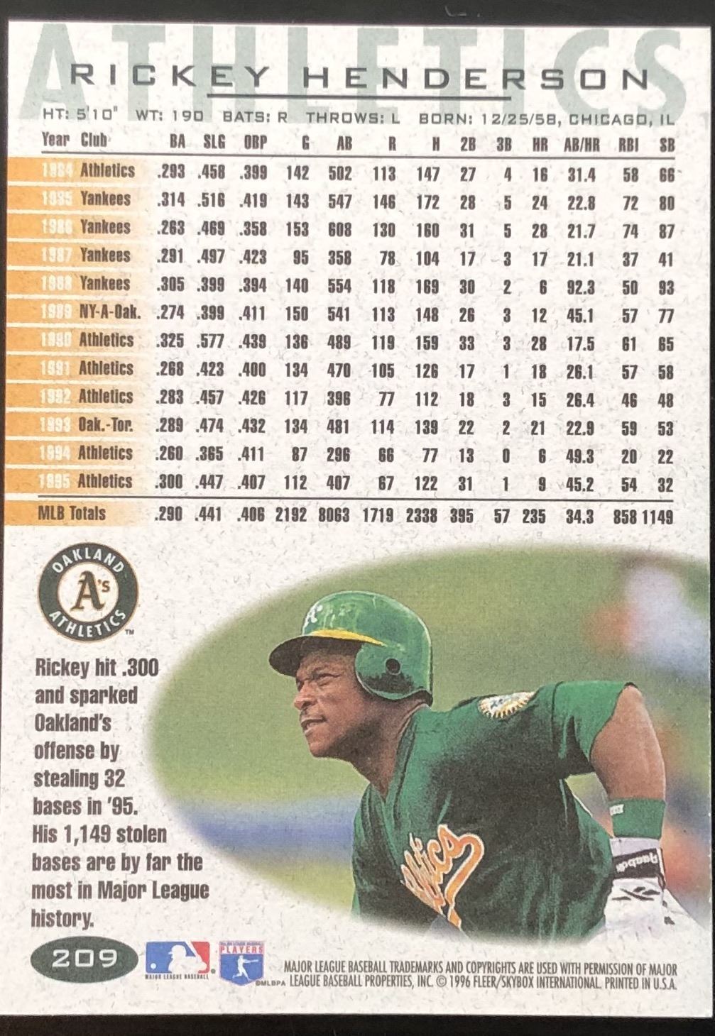 Lot 425 1996 FLEER RICKEY HENDERSON (HOF)