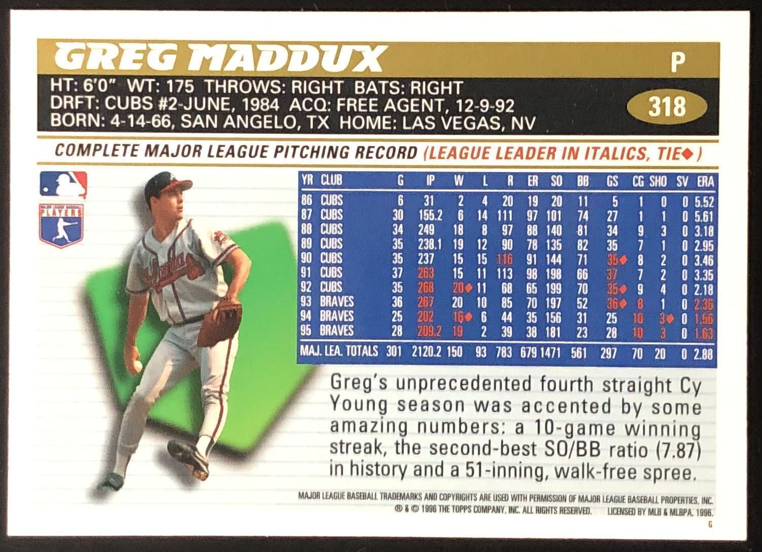 Lot 426 1996 TOPPS GREG MADDUX (HOF)