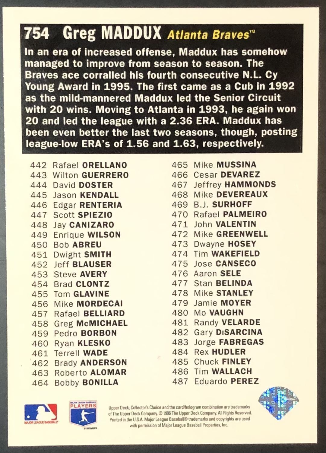Lot 428 1996 UPPER DECK GREG MADDUX (HOF)