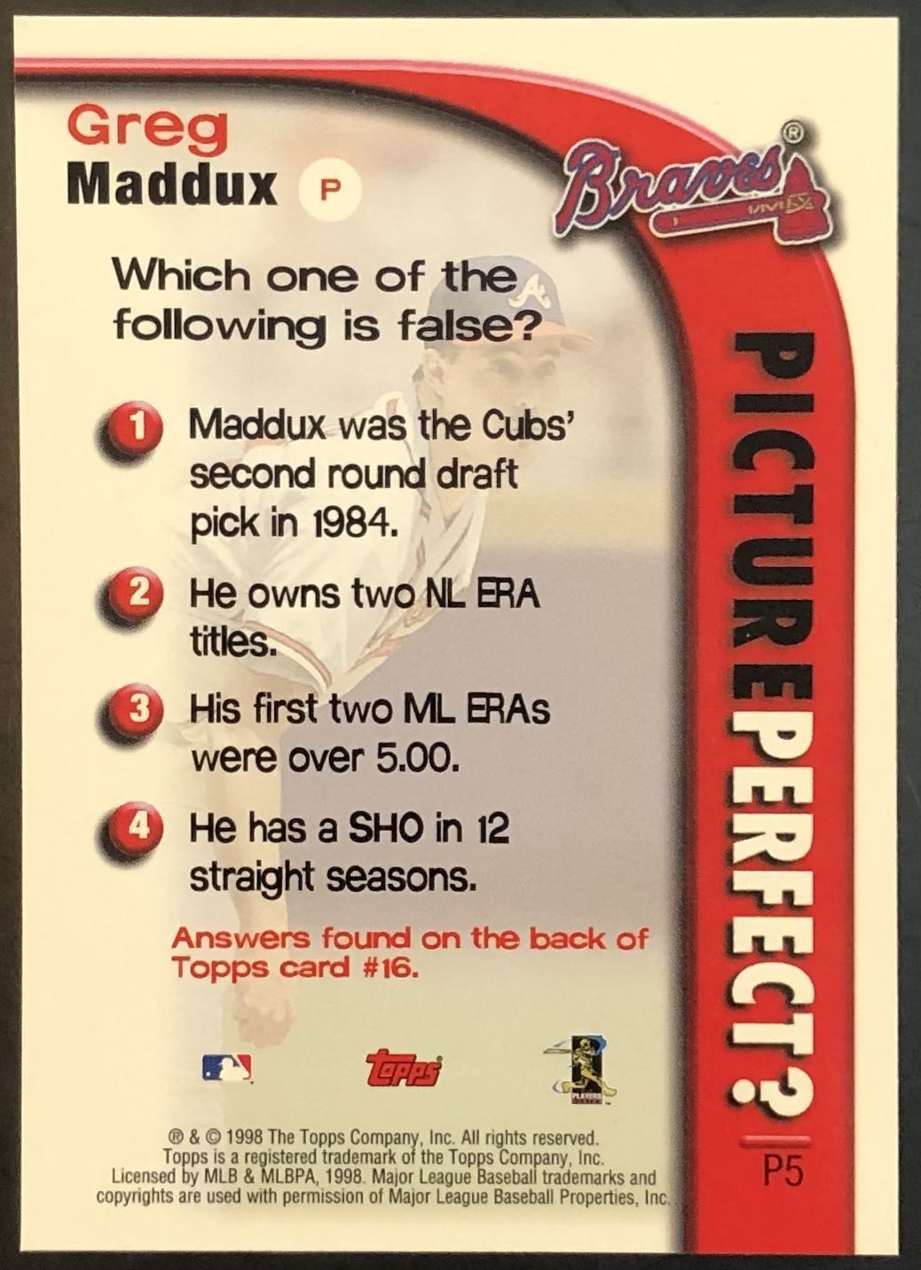 Lot 439 1998 TOPPS GREG MADDUX (HOF)