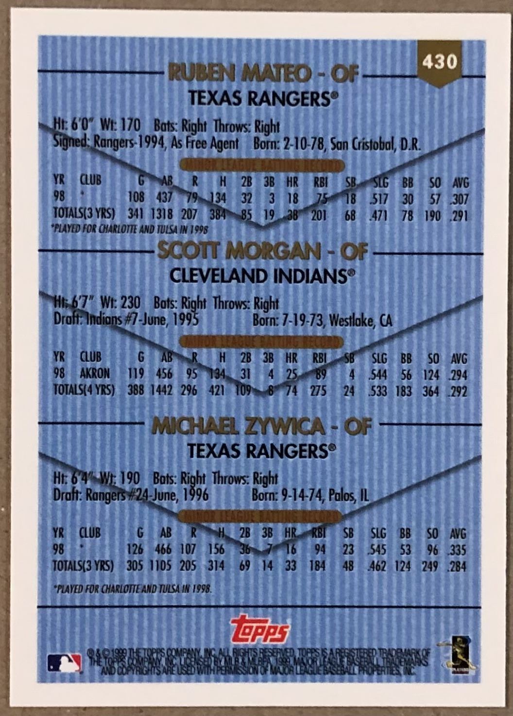Lot 453 1999 TOPPS RUBEN MATEO ROOKIE CARD