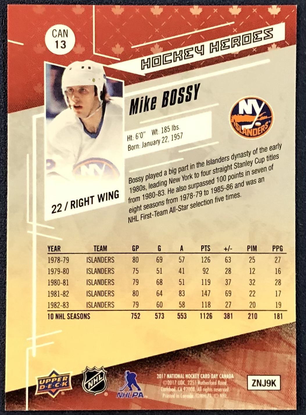 Lot 487 2017 UPPER DECK CANADA HOCKEY DAY MIKE BOSSY (HOF)