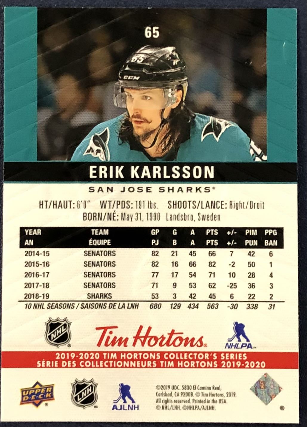Lot 491 2019-20 UPPER DECK ERIK KARLSSON