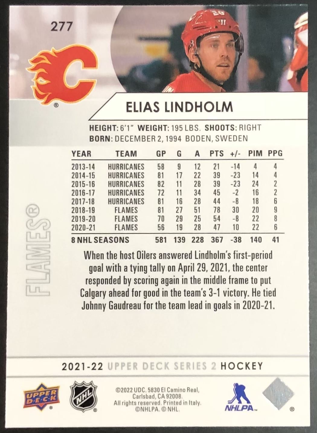 Lot 501 2021-22 UPPER DECK ELIAS LINDHOLM