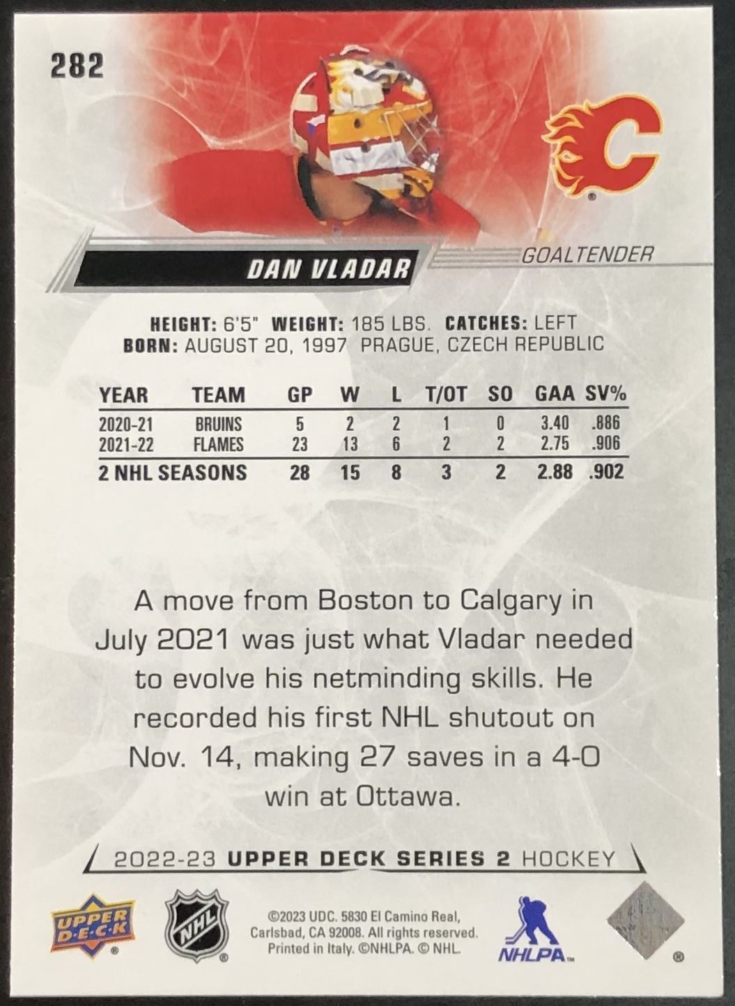 Lot 508 2022-23 UPPER DECK DAN VLADAR ROOKIE CARD