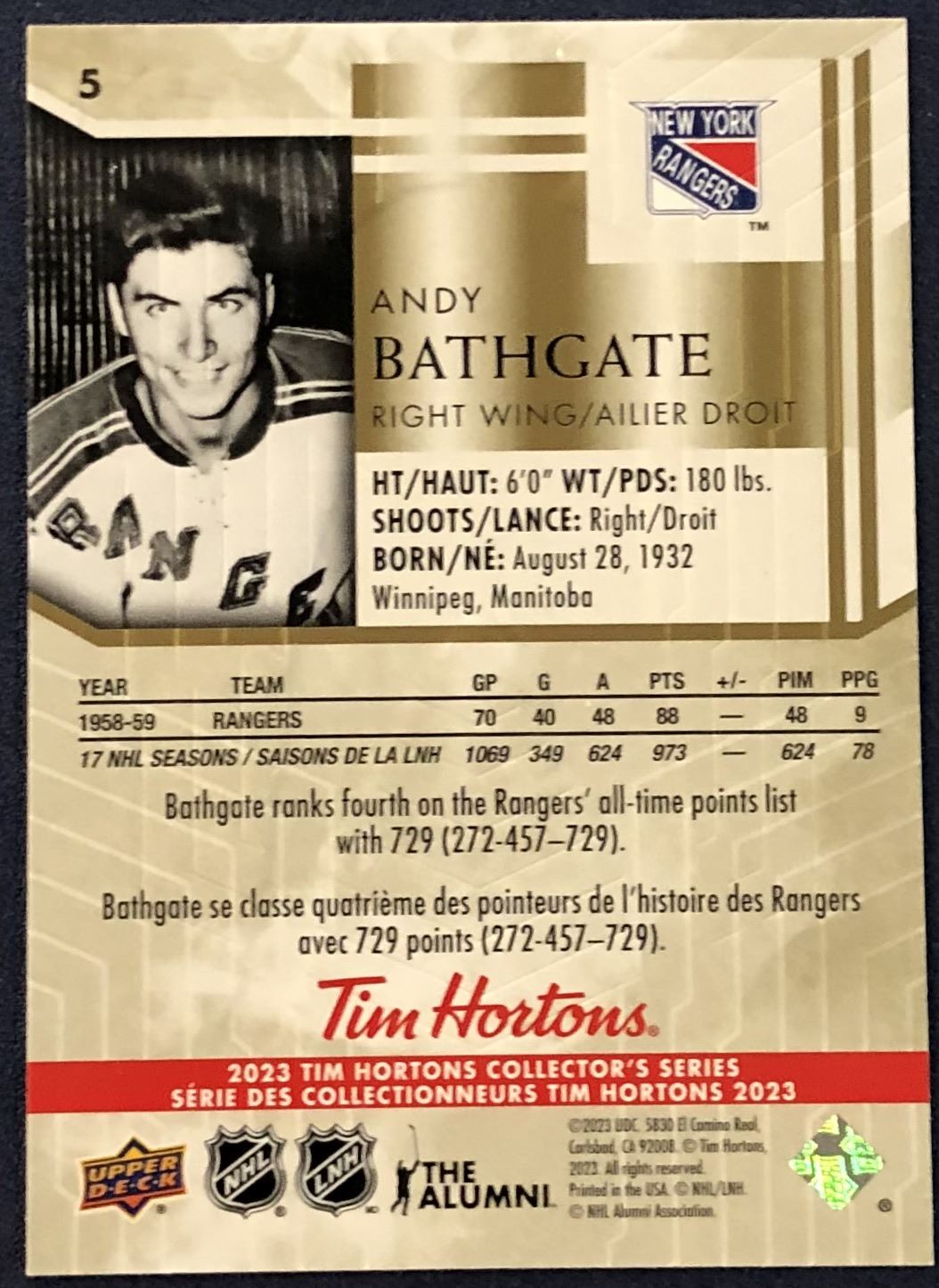 Lot 515 2023 UPPER DECK ANDY BATHGATE (HOF)