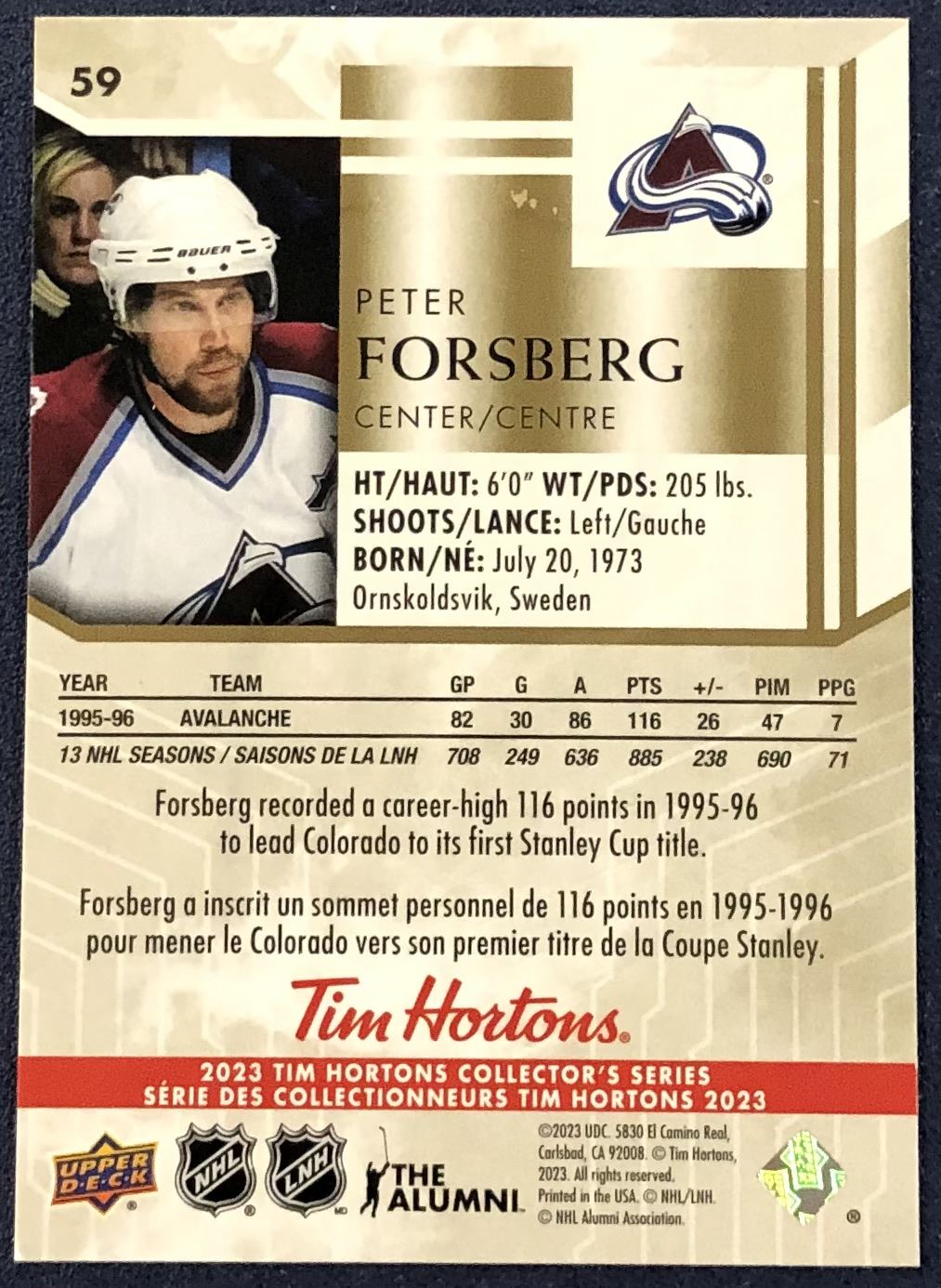 Lot 531 2023 UPPER DECK PETER FORSBERG (HOF)
