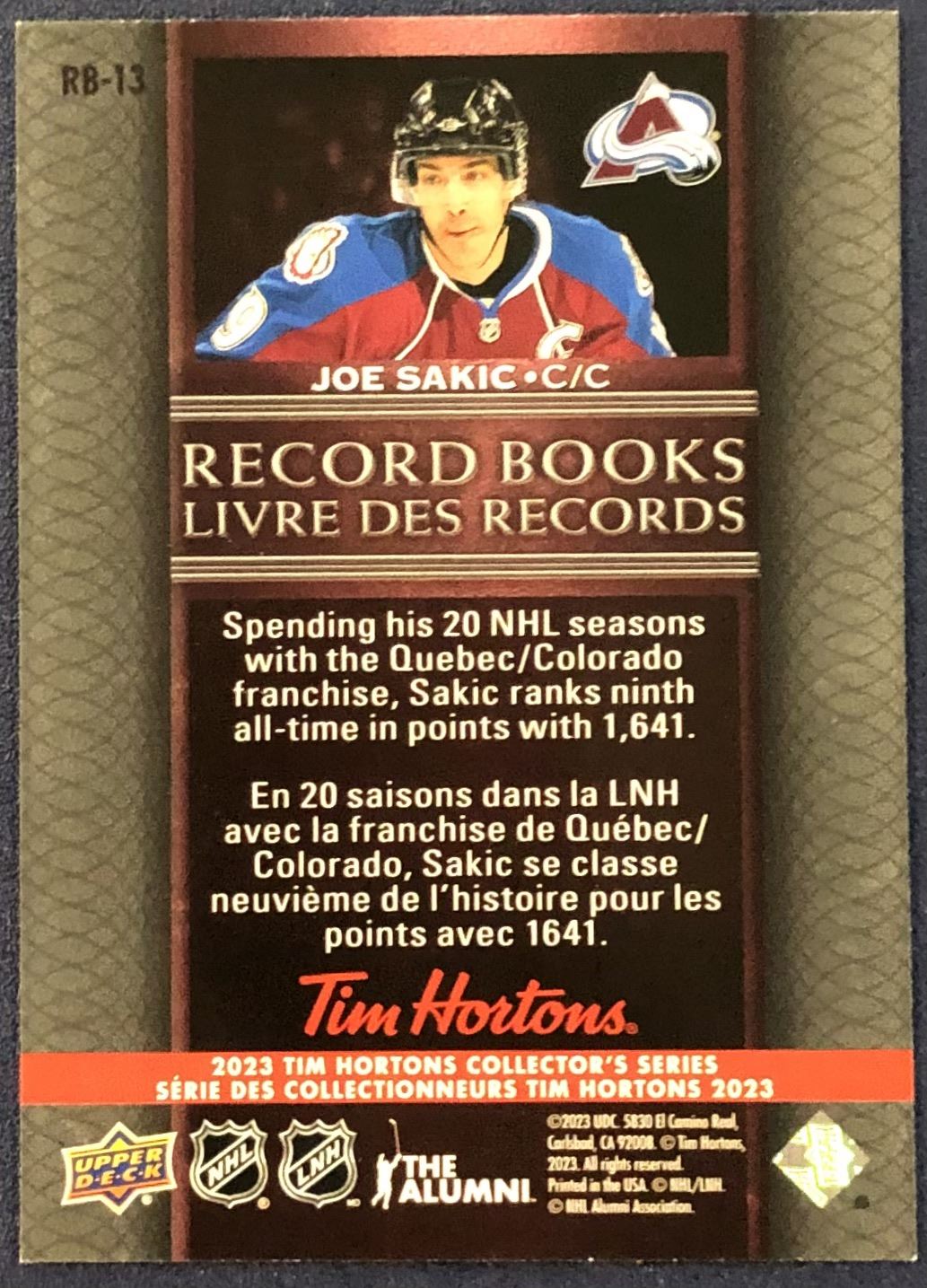 Lot 533 2023 UPPER DECK RECORD BOOKS JOE SAKIC (HOF)