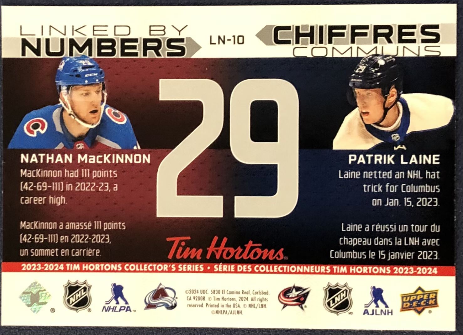 Lot 547 2024 UPPER DECK LINKED BY NUMBERS - NATHAN MacKINNON