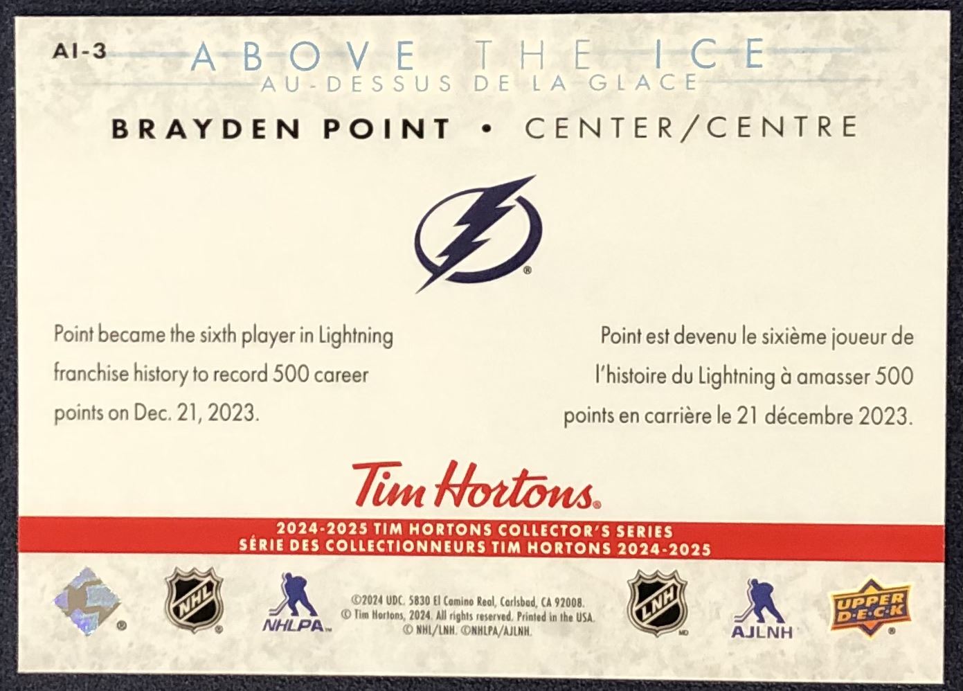 Lot 548 2024-25 UPPER DECK ABOVE THE ICE BRAYDEN POINT