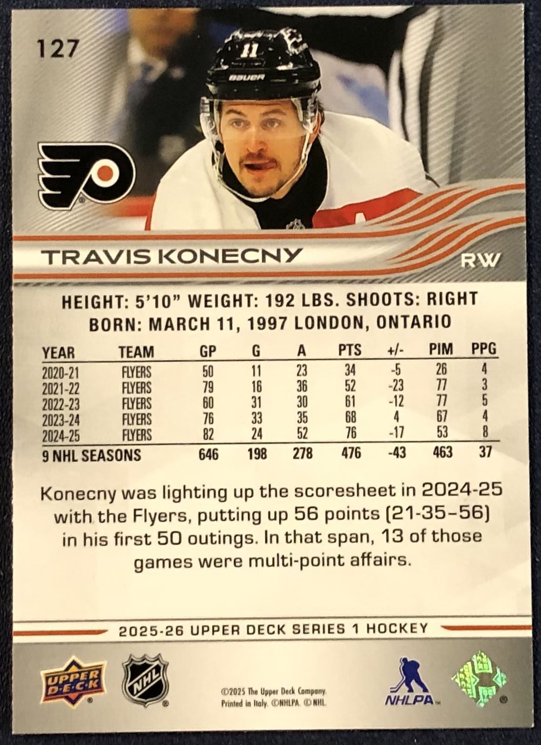 Lot 574 2025-26 UPPPER DECK TRAVIS KONECNY
