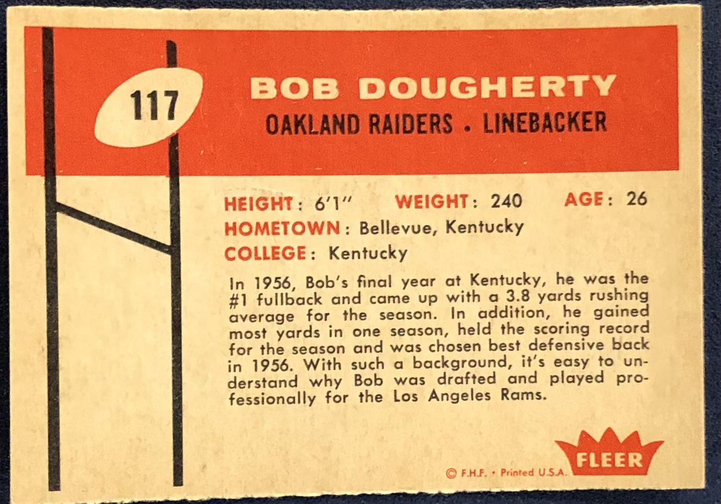 Lot 587 1960 FLEER NFL FOOTBALL BOB DOUGHERTY ROOKIE CARD