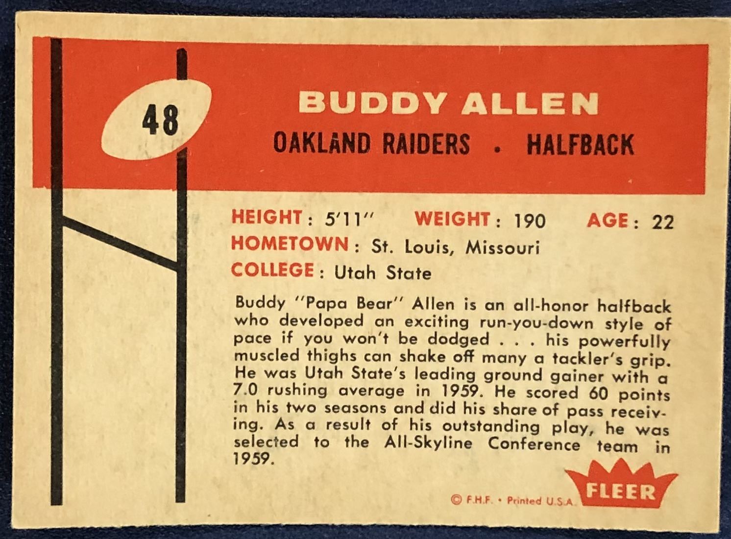 Lot 588 1960 FLEER NFL FOOTBALL BUDDY ALLEN