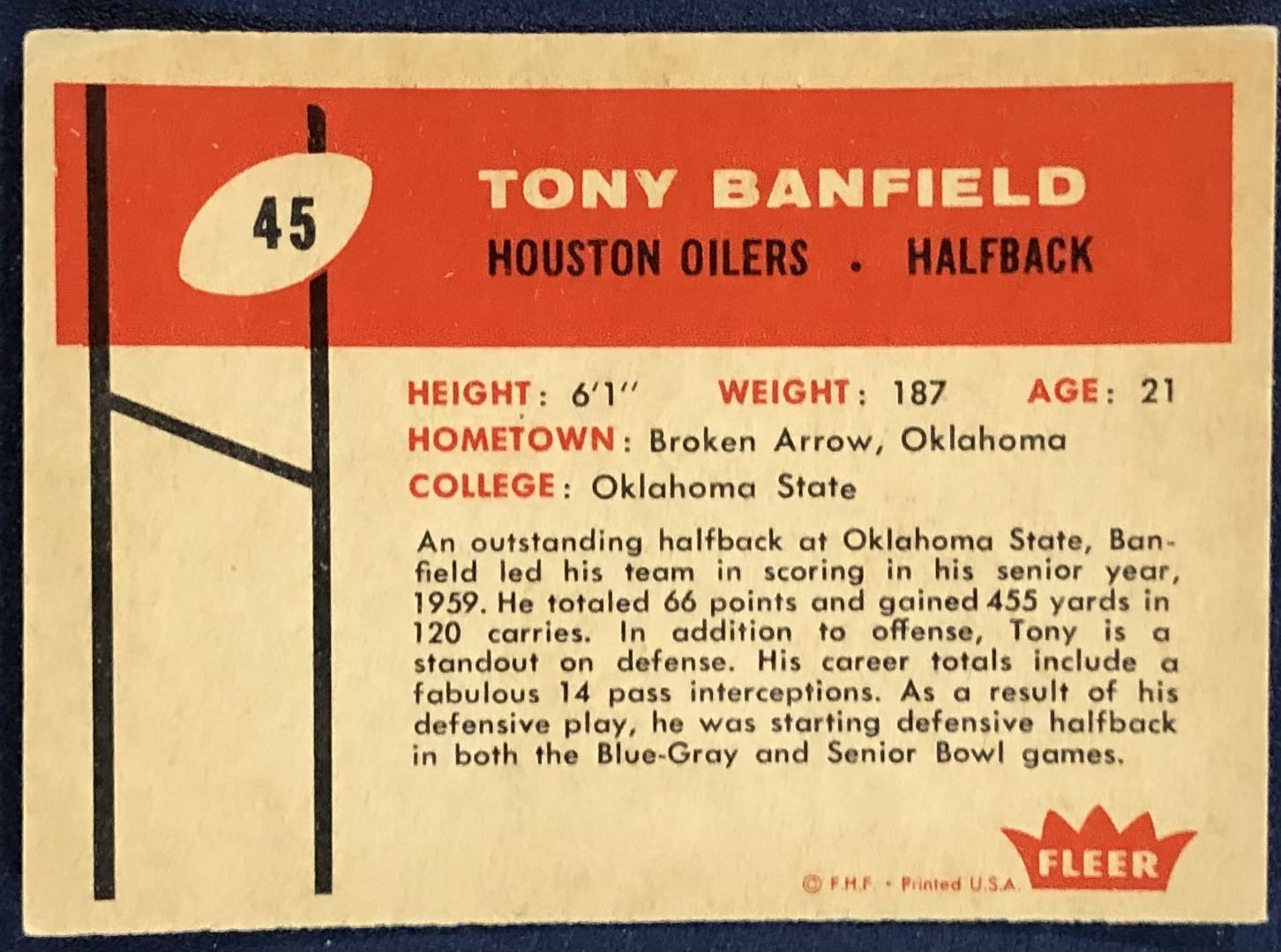 Lot 592 1960 FLEER NFL FOOTBALL TONY BANFIELD ROOKIE CARD