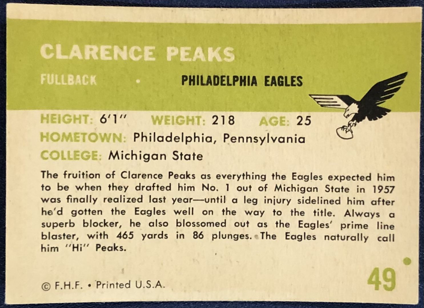 Lot 596 1961 FLEER NFL FOOTBALL CLARENCE PEAKS
